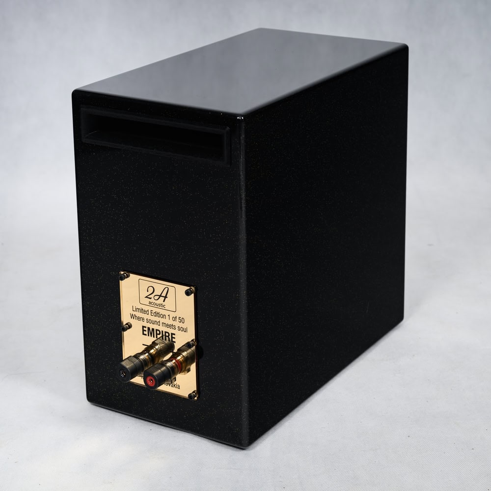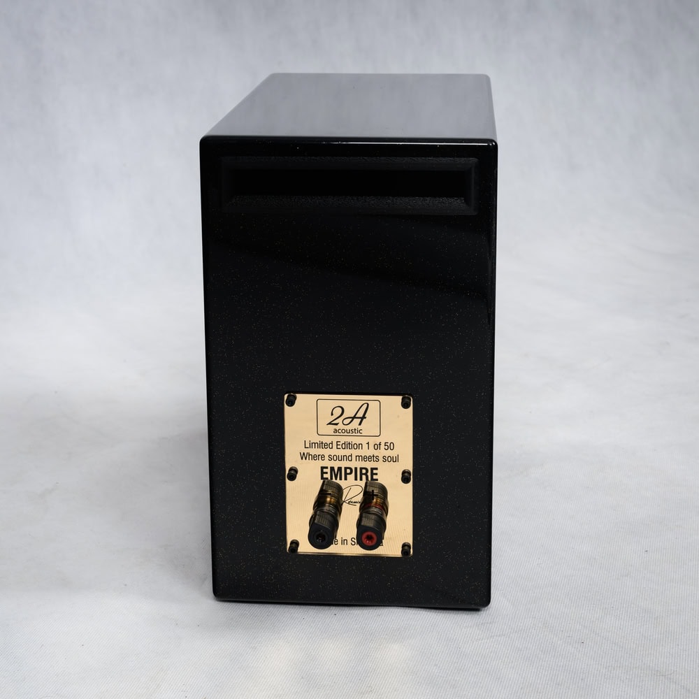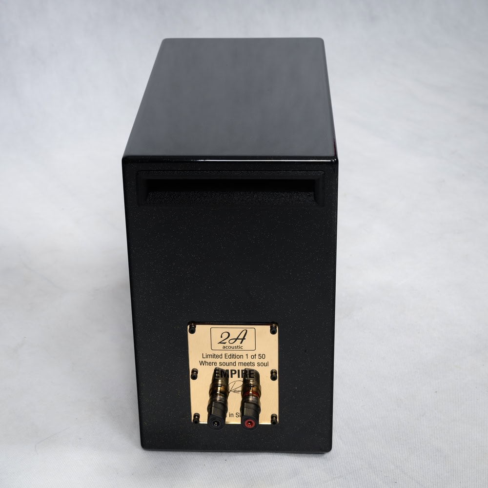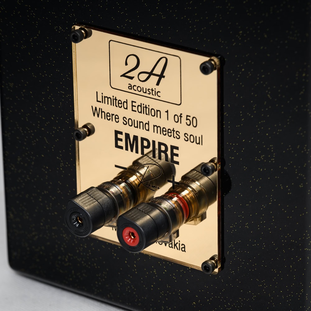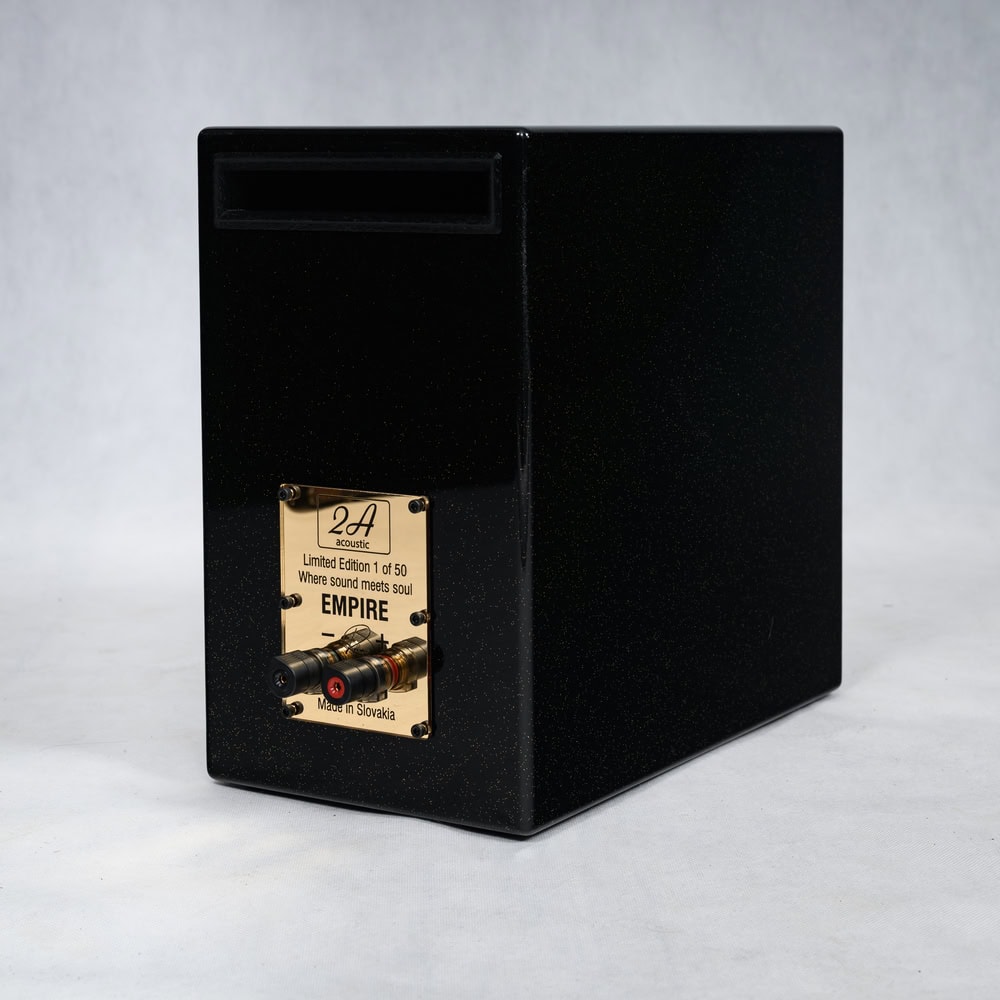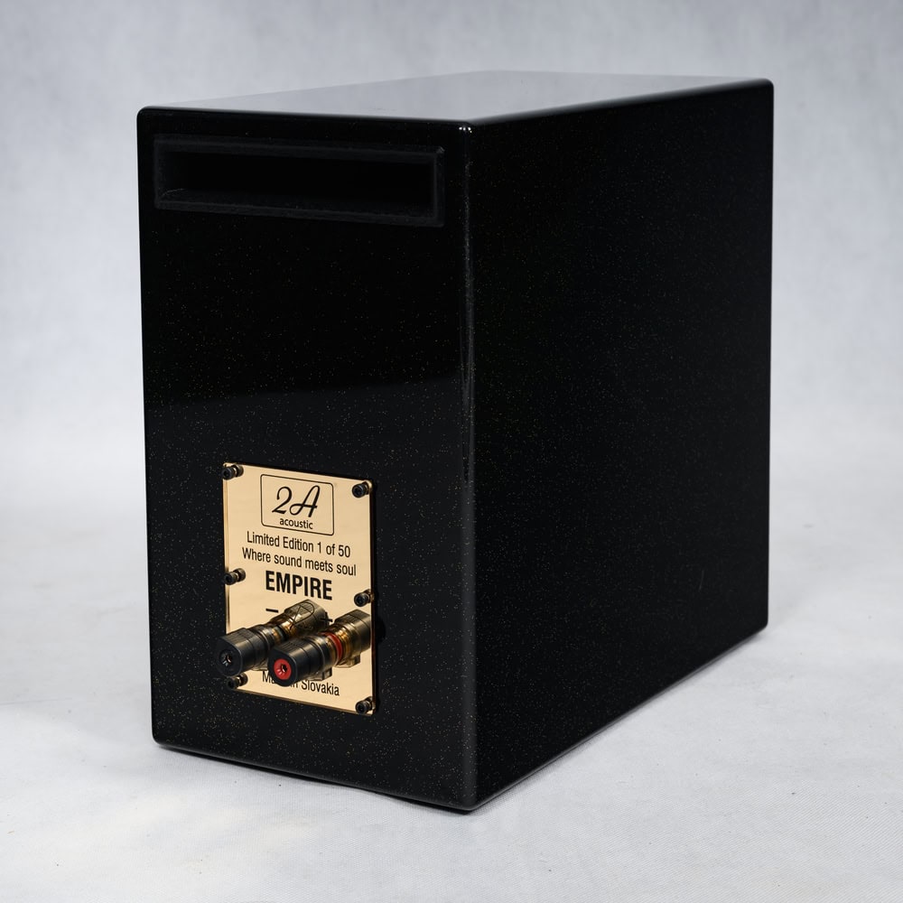 2A Acoustic Empire R: Referenční regálový reproduktor. Limitovaná edice 50 ks. Vylepšená výhybka, vnitřní kabeláž, Furutech terminály. Vynikající zvuková neutralita.