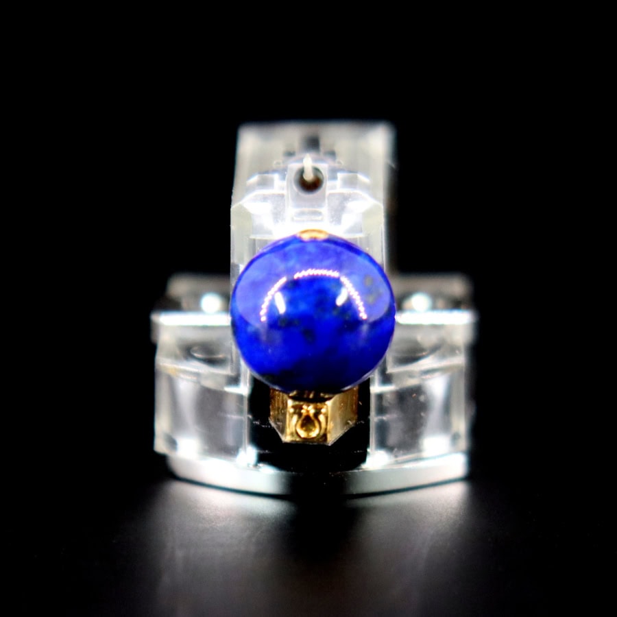 Koule z Lapis Lazuli na přední části přenosky slaďuje sweet spot těla s těžištěm vibračního systému. Díky svému složení z několika druhů sodalitu vibrační vlna proudící ze severního pólu koule je absorbována v krystalové struktuře a vlna stékající po povrchu je zrušena na jižním pólu.